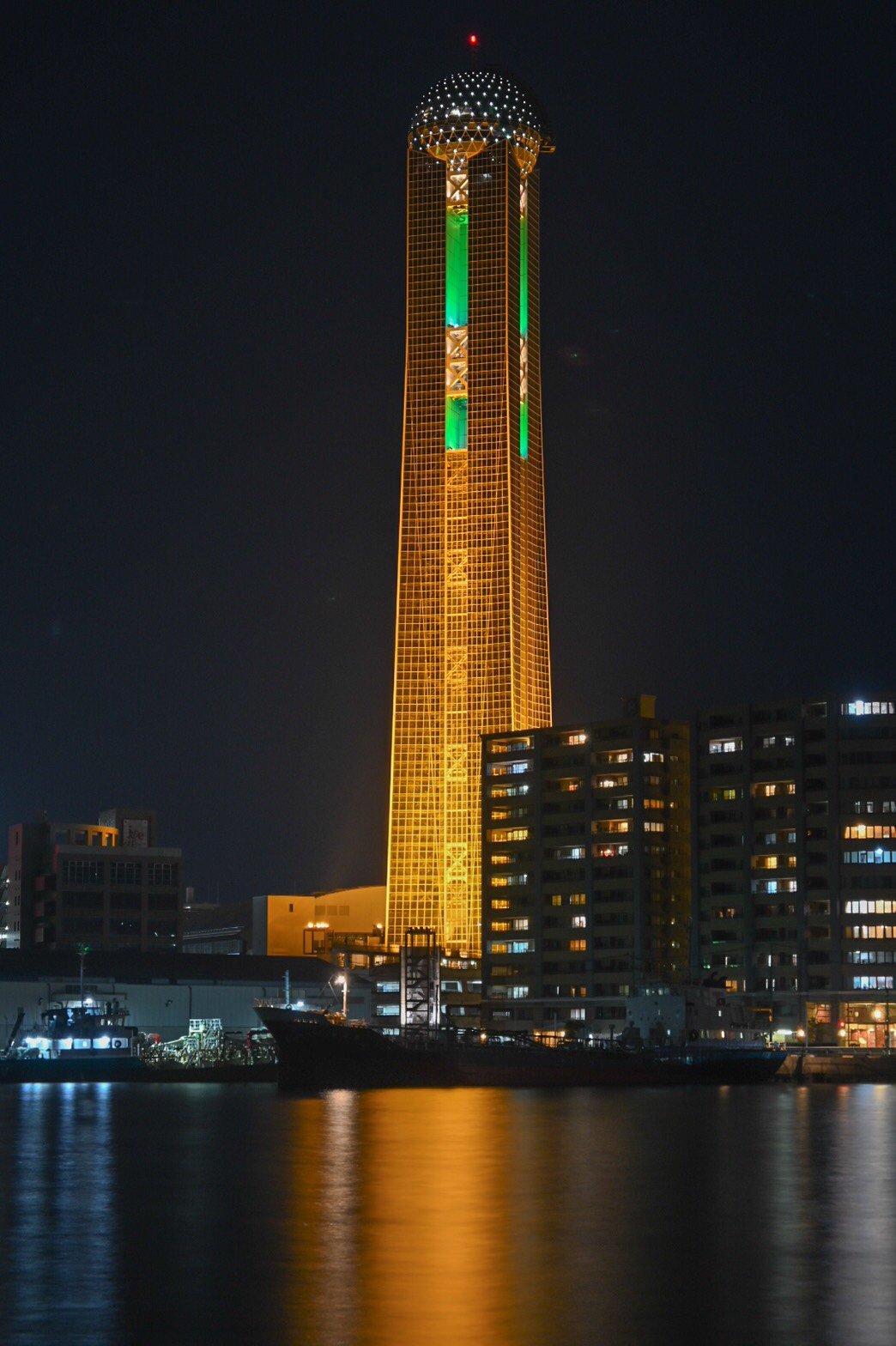 オーヴィジョン海峡ゆめタワーでは「世界緑内障週間」期間中に緑内障のシンボルカラーのグリーンにライトアップをします。